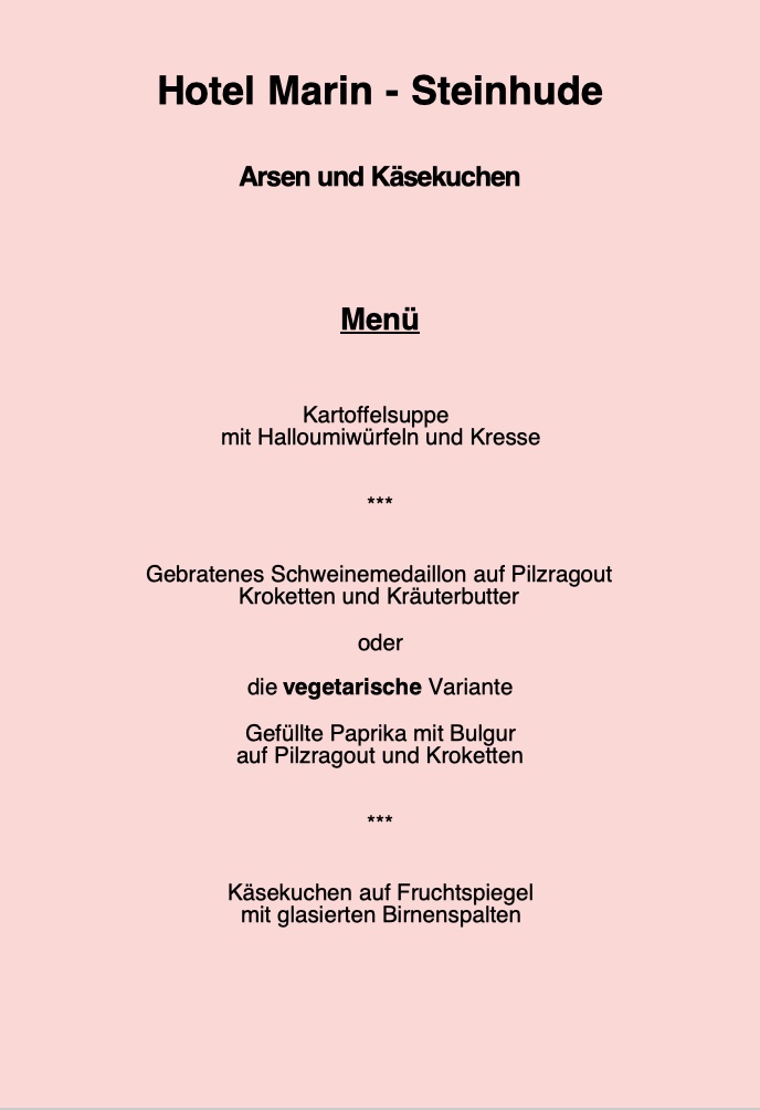 Tickets für Arsen und Käsekuchen Krimi-Walk-Act 21.03.26 Hotel Marin Steinhude Wunstorf Einlass: 19.00, Beginn: 19.30